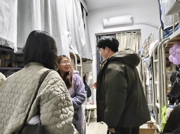 12月9日,辅导员们走进学生宿舍,开展以关爱同学为核心的走访工作,同步进行宿舍卫生与违禁物品检查。